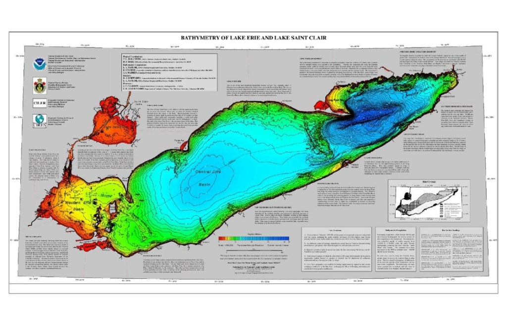 On the southern end of Lake M/H there is a loss of continuity in the crater ellipse. If one looks at shallow Lake Erie, the far western edge is the shallowest, while the east flowing water is deeper on that portion. If one examines the length and angle in relation to the latitude, you could theoretically slide it westward and it would complete the water filled crater at the southern end, making a complete framing of the enclosed crater similar to Lake Manicouagan. It is totally within the realm of possibilities that glacier debris conveyored by southward flowing glaciers filled in the old southern connection path of Lake M/H with its large CFM rates during the many glacier-melting years. Lake Erie now removes any rainfall in the Superior/Michigan/Huron drainage basin and sends it over the erosion resistant Niagara Escarpment at Niagara Falls. Lake Erie, in essence, is a giant reservoir held back by the encircled Niagara Escarpment that disappears below grade on the southern end due to the nature of that impactor’s shape, speed, and composition. However, on the far northern end, the Escarpment is absent because it met any glacier flows head on. Being of a limestone construction, the wall was at a 90°angle to any glacier advancement from the south shores of Rift Lake Superior. The current minor elevation difference between Lakes Superior and M/H would have assisted the glaciers to attack this soft wall, head on with a strength similar to marble (a number of 3-4 on a increasing scale up to 10 with granite being 6-8). Thus, its absence on the North end today could be explained. Looking down the west side of Lake Michigan or the east side of Lake Huron, the Escarpment can be seen with elevations of nearly 100′ above the terrain. There are sporadic breaks where the glaciers have broken through but, for the most part, the direction of the Escarpment is parallel to the glacier flow. The glaciers just moved on both sides of them acting as huge, yet fluid, lateral supports.